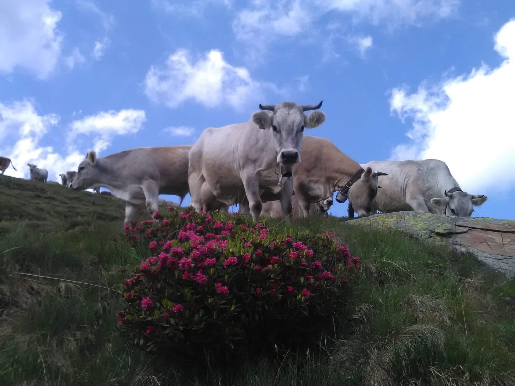Attualmente carichiamo l’alpe con 150 vacche nutrici con vitelli e manze da inizio giugno fino circa metà ottobre .