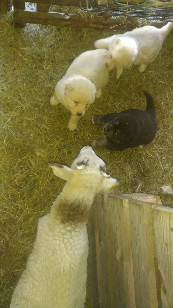 Die Welpen lernen spielend mit ihren ungleichen Spielgefaehrten umzugehen und testen die Reaktion der einzelnen Tiere!