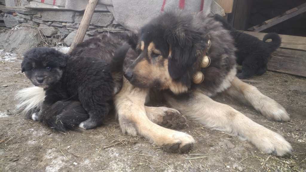 Ein harmonisches HIRTENHUNDE-RUDEL hat eine sehr soziale Struktur mit eingespielter Rollenverteilung wie in einem Wolfsrudel. Kleine schwache Tiere werden instinktiv beschuetzt und grosse fremde Caniden als Eindringlinge vertrieben oder bekaempft.