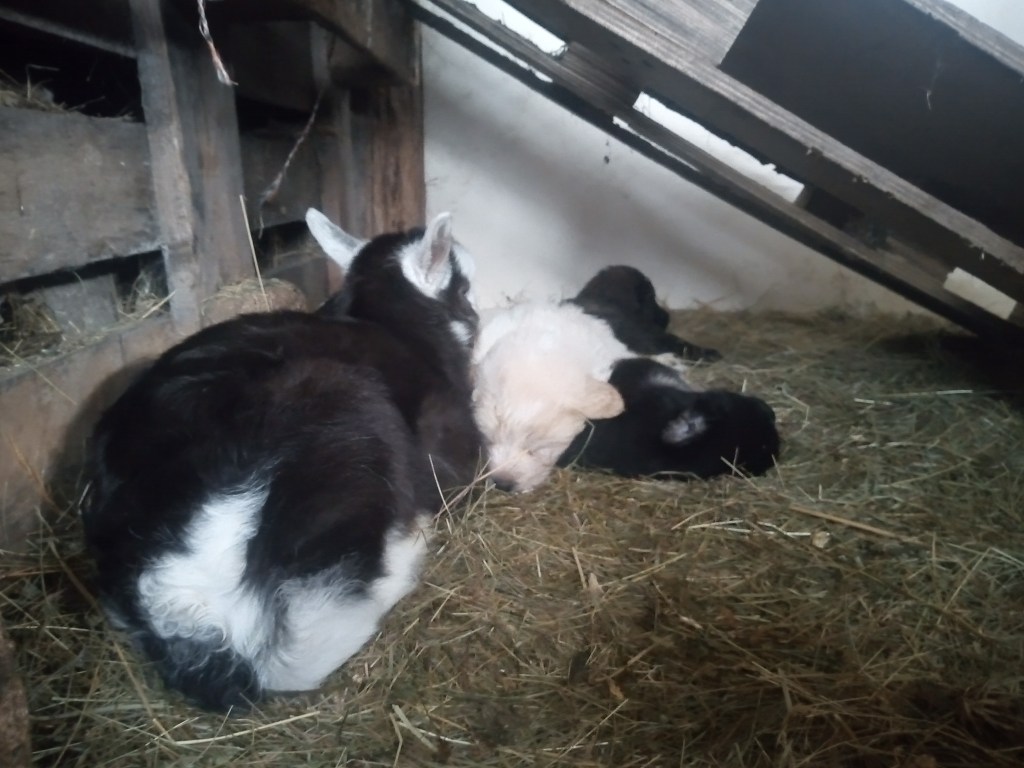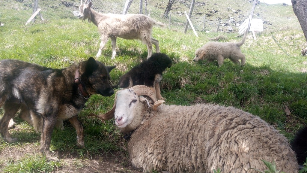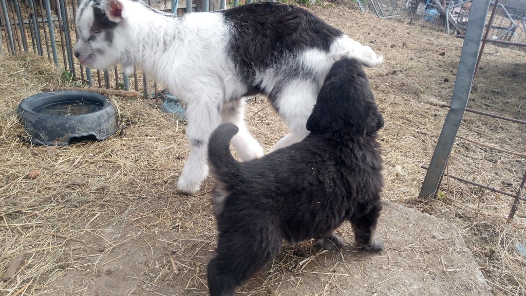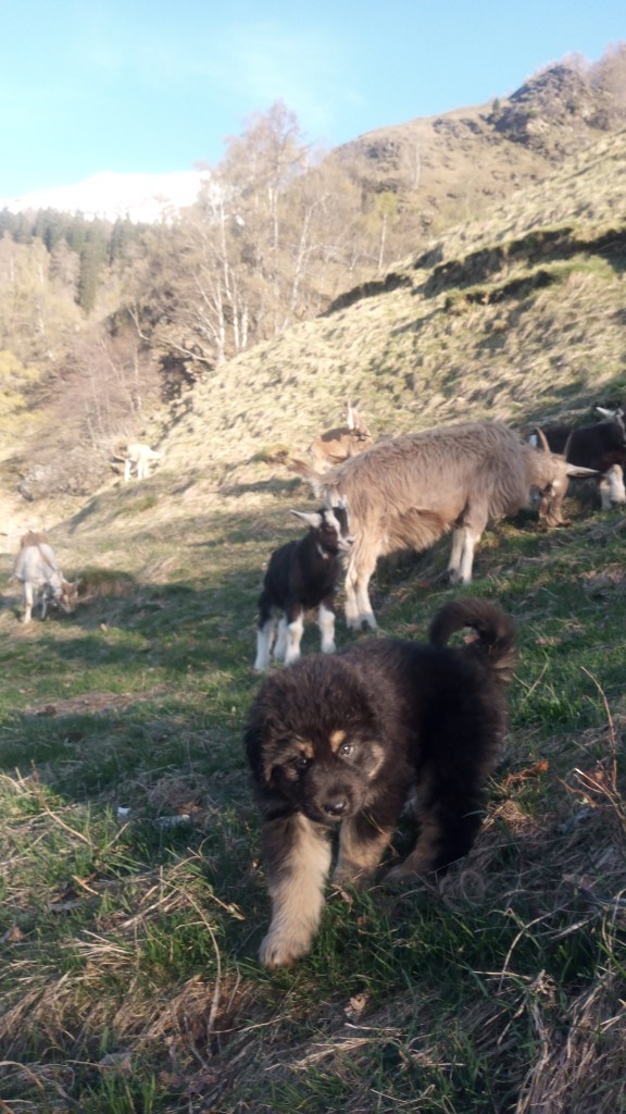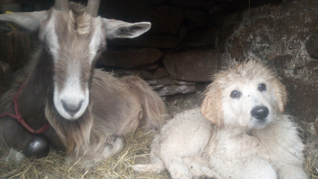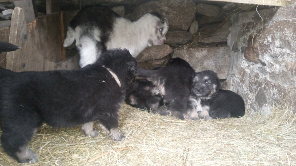 Die kleinen Sila Welpen wachsen im Stall mit Ziegen und Gitzi gemeinsam auf und werden so nach alter Tradition als Herdenschutzhunde sozialisiert.