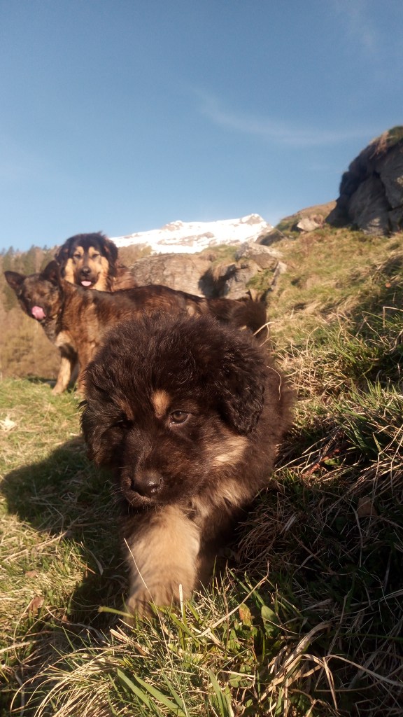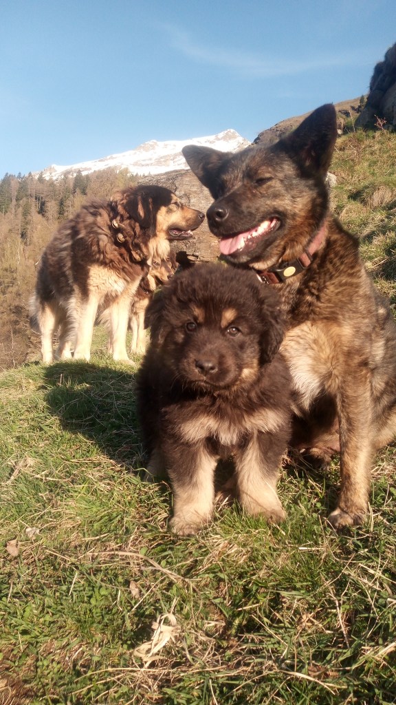 Das Verhalten der Welpen vom letzten Jahr mit Vater Moro mit fremden Hund: