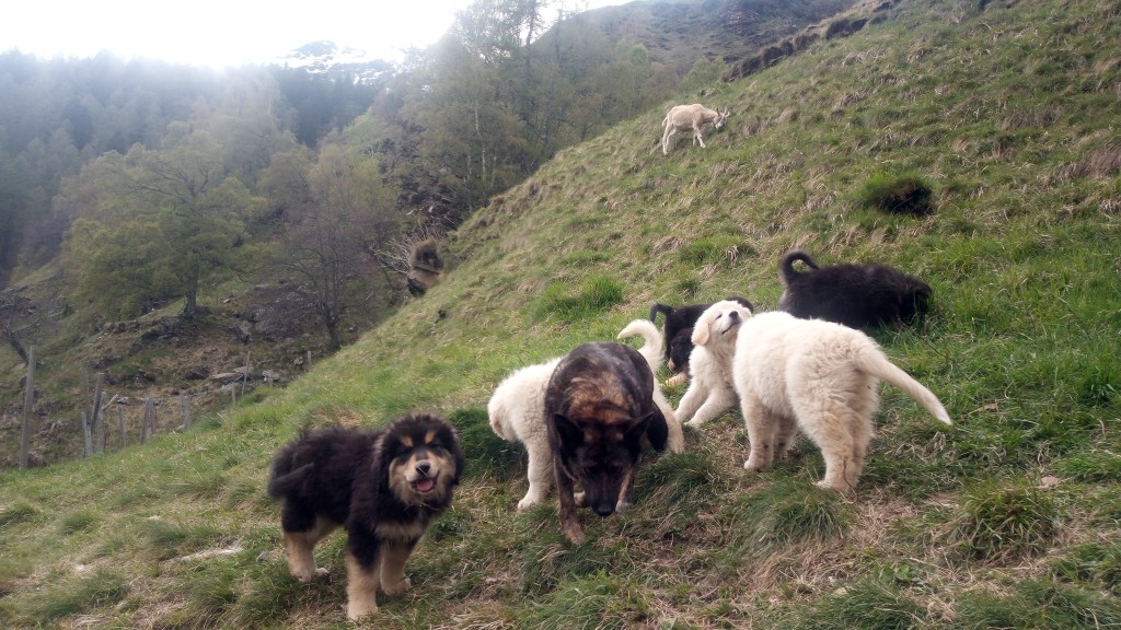Die Welpen werden dabei zuerst von ihrer Mutter und später den anderen verschiedenen Rudelmitgliedern sowie von den Ziegenmüttern erzogen und lernen alles intuitiv sehr schnell.