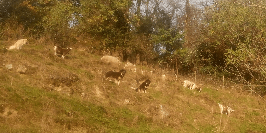 Alle unsere Hunde leben im Rudel frei mit den Ziegen im Freilauf und sind nachts immer draussen so dass sie ihre Wachtinstinkte optimal ausprägen können . Im Sommer hatten wir starke Wolfspräsenz auf der Alp und die Welpen haben das Verhalten von ihren Eltern gelernt und sind sehr aufmerksam . Sie bellen nur wenn es einen guten Grund gibt und nur solange bis die Luft rein ist.
