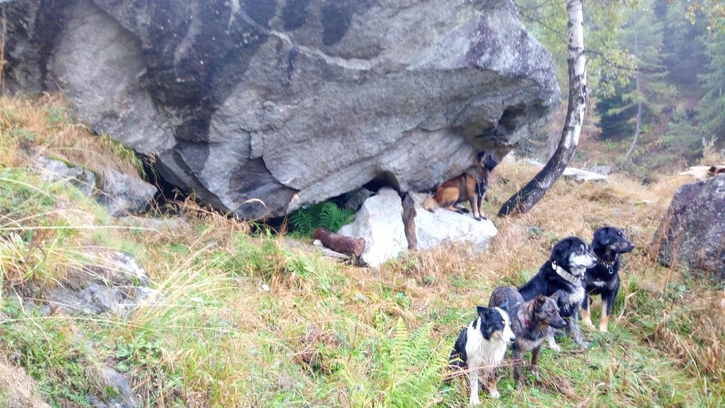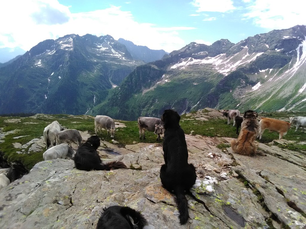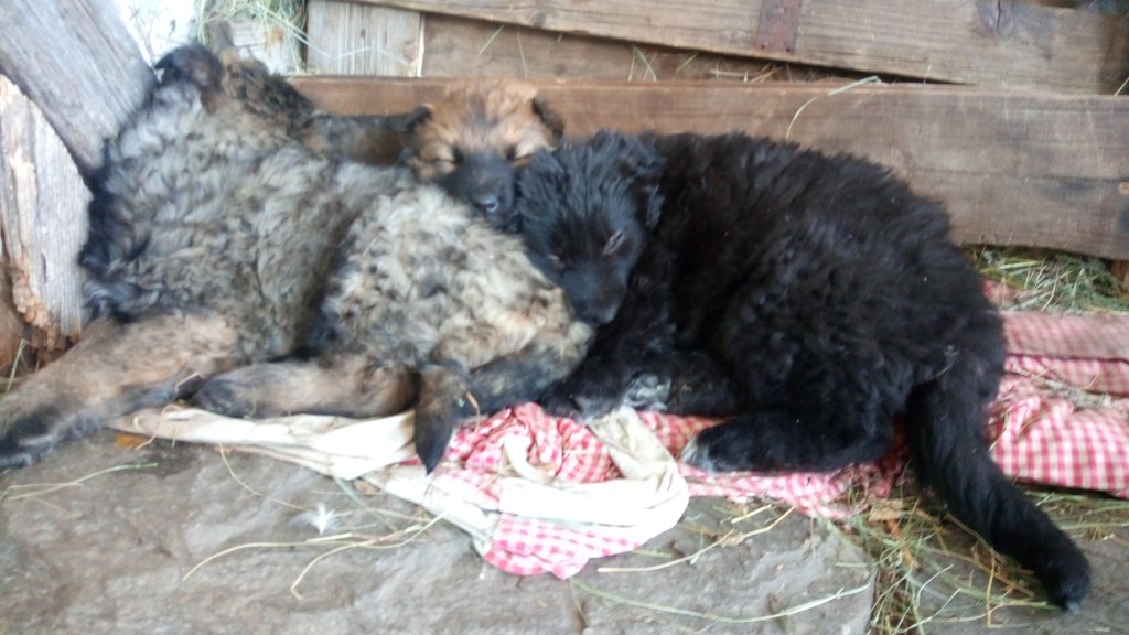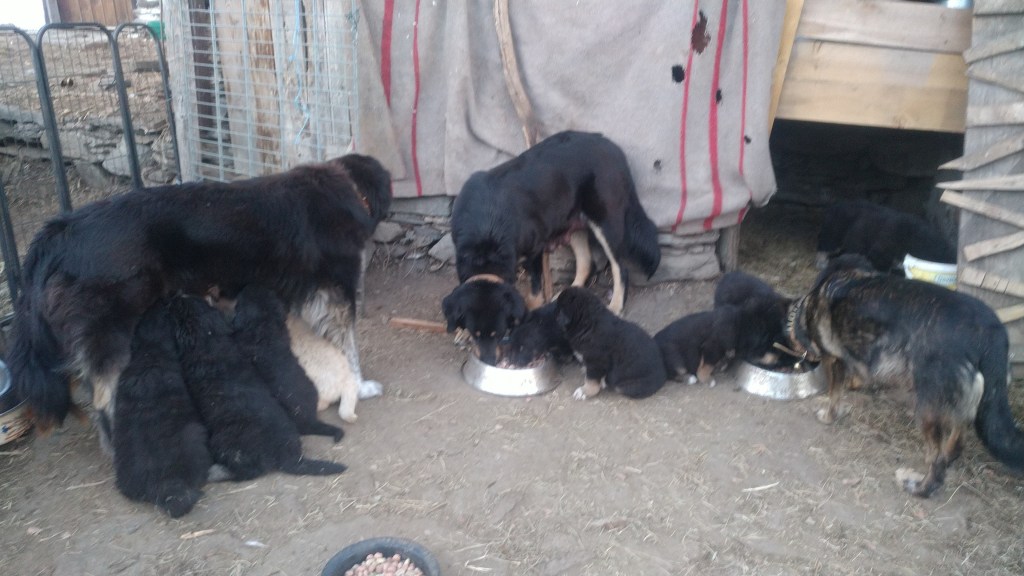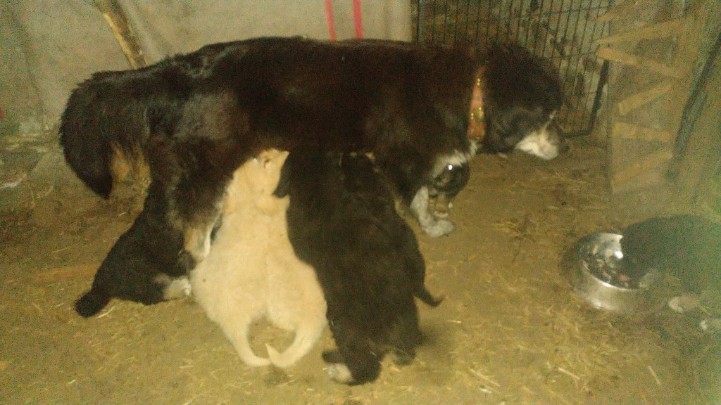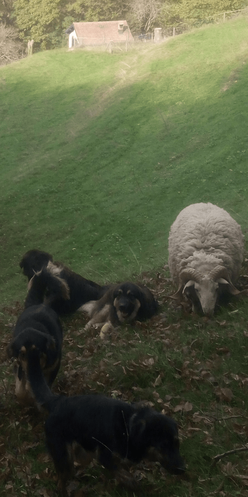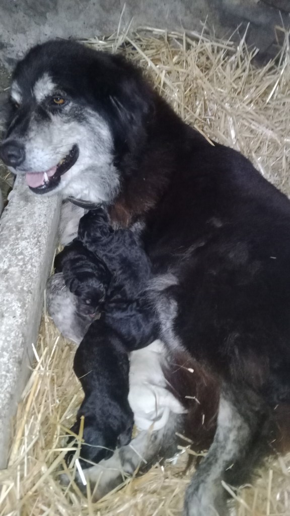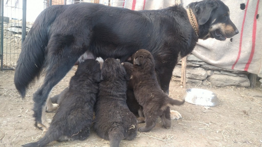 Pastore della Sila Kalabresische Hirtenhunde Zuchthündin Mina und ihre Tochter Arya und Belluna Tochter von Mara sowie Zuchtrüde Moro und Rüde Sek.