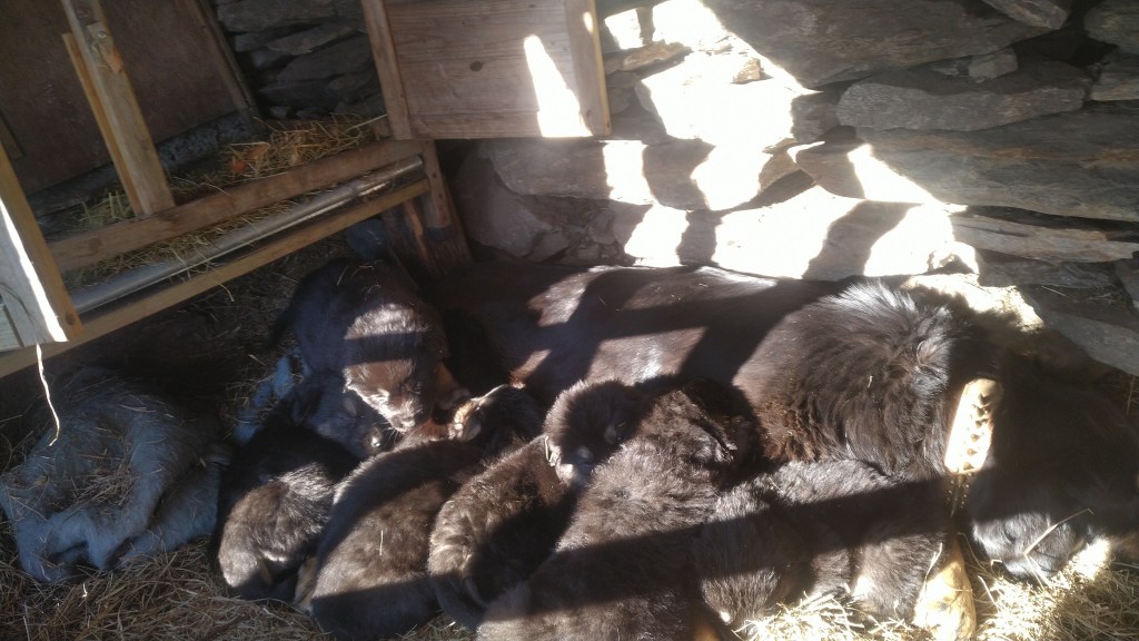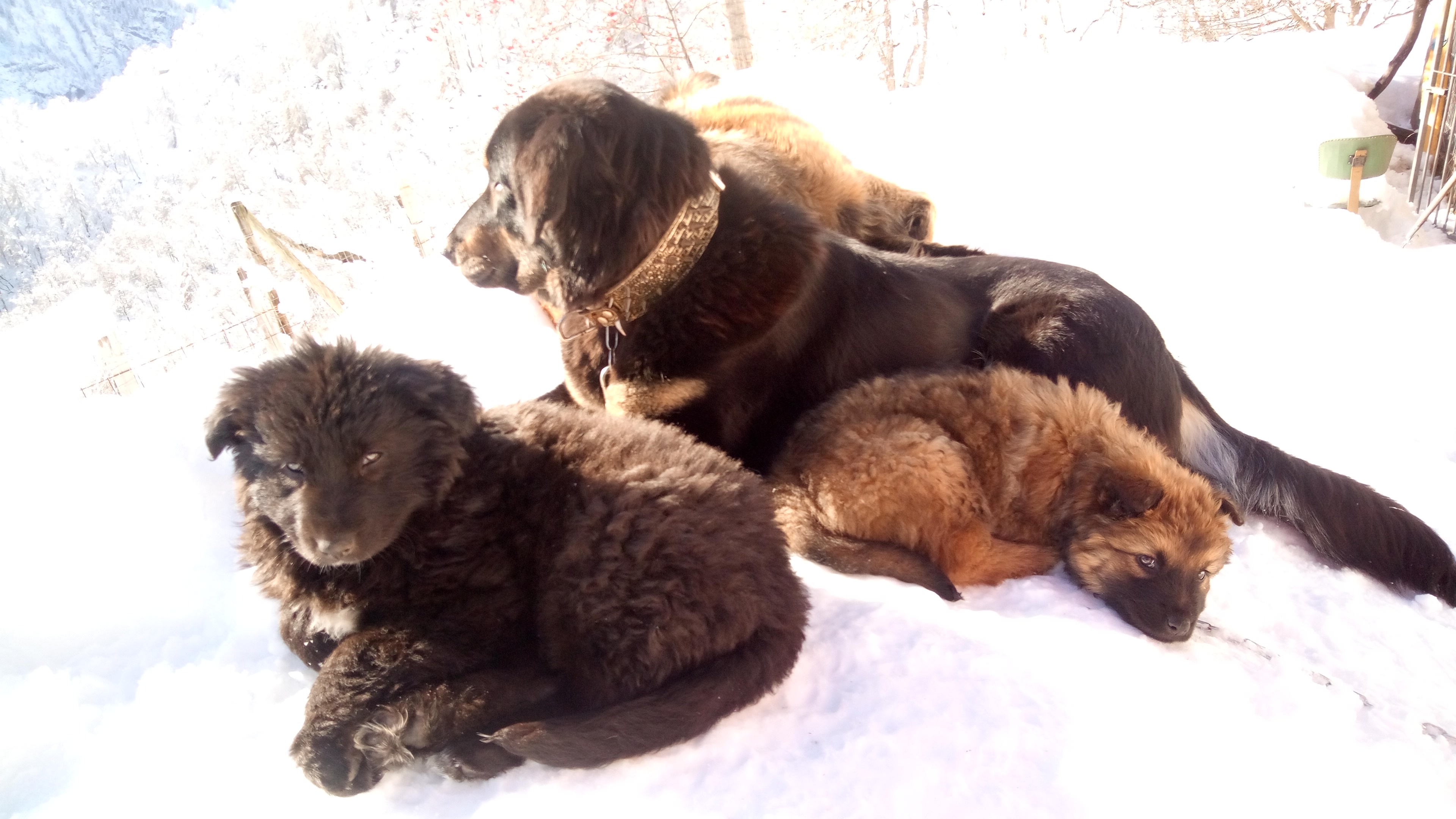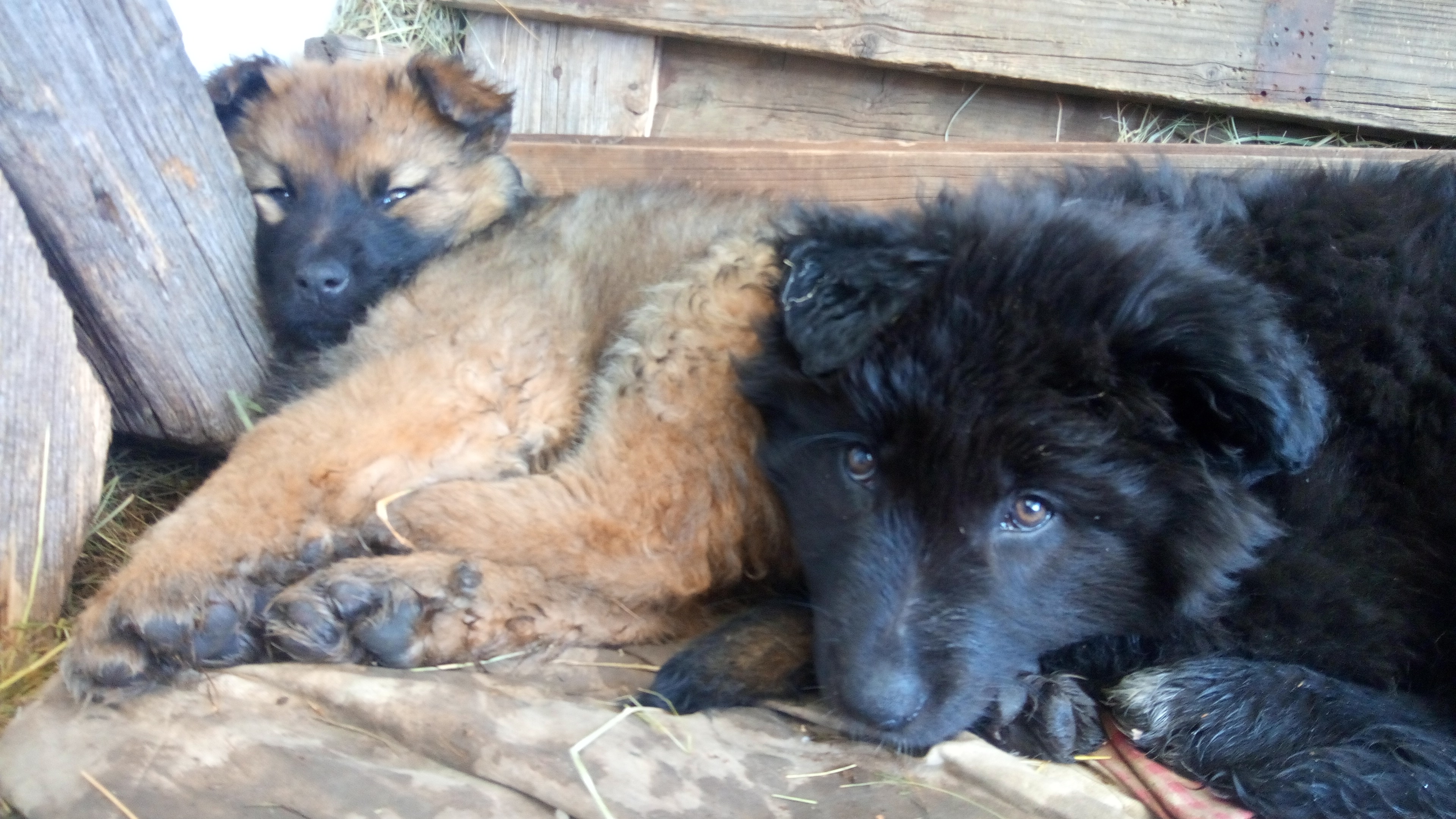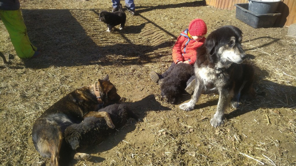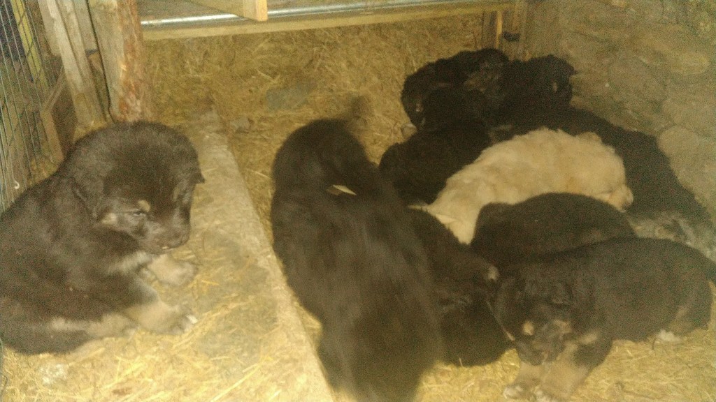 Welpen wachsen in harmonischem Rudel auf .