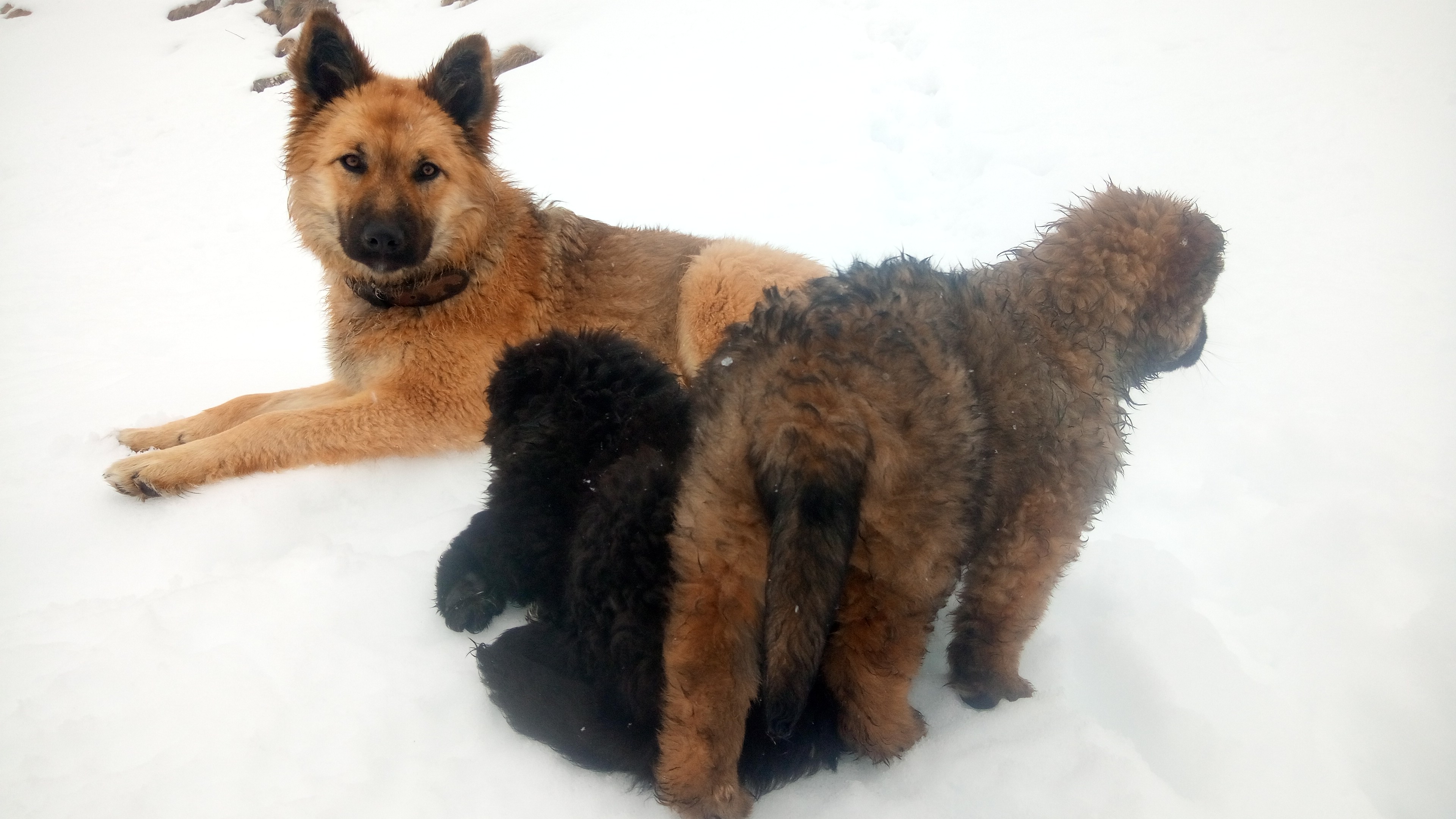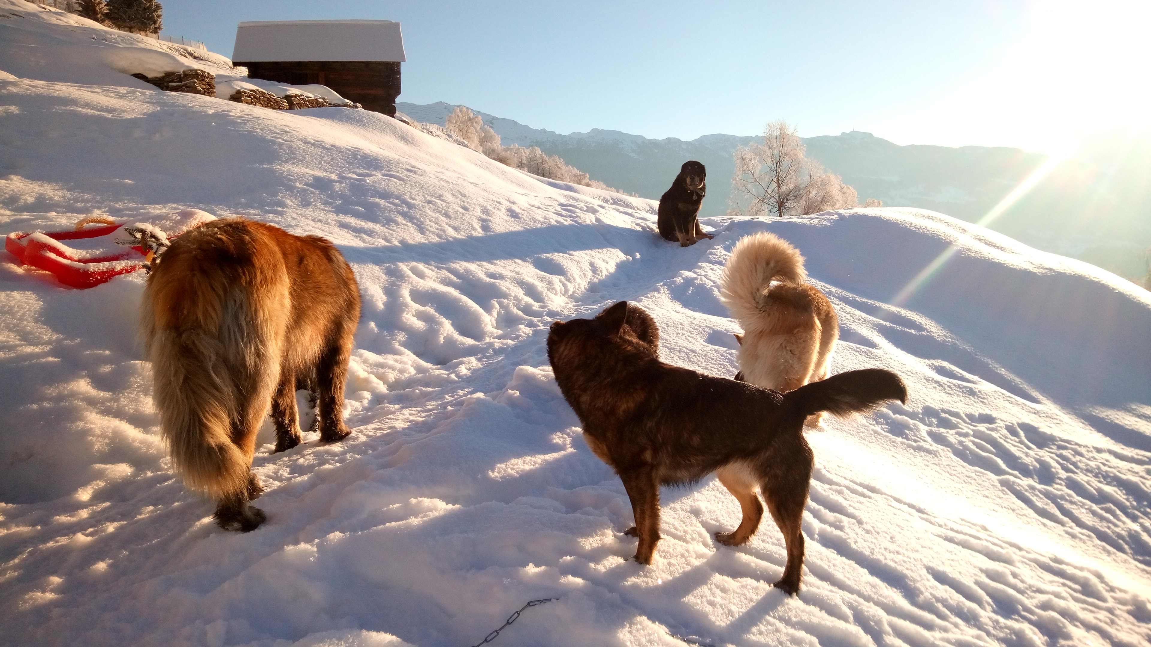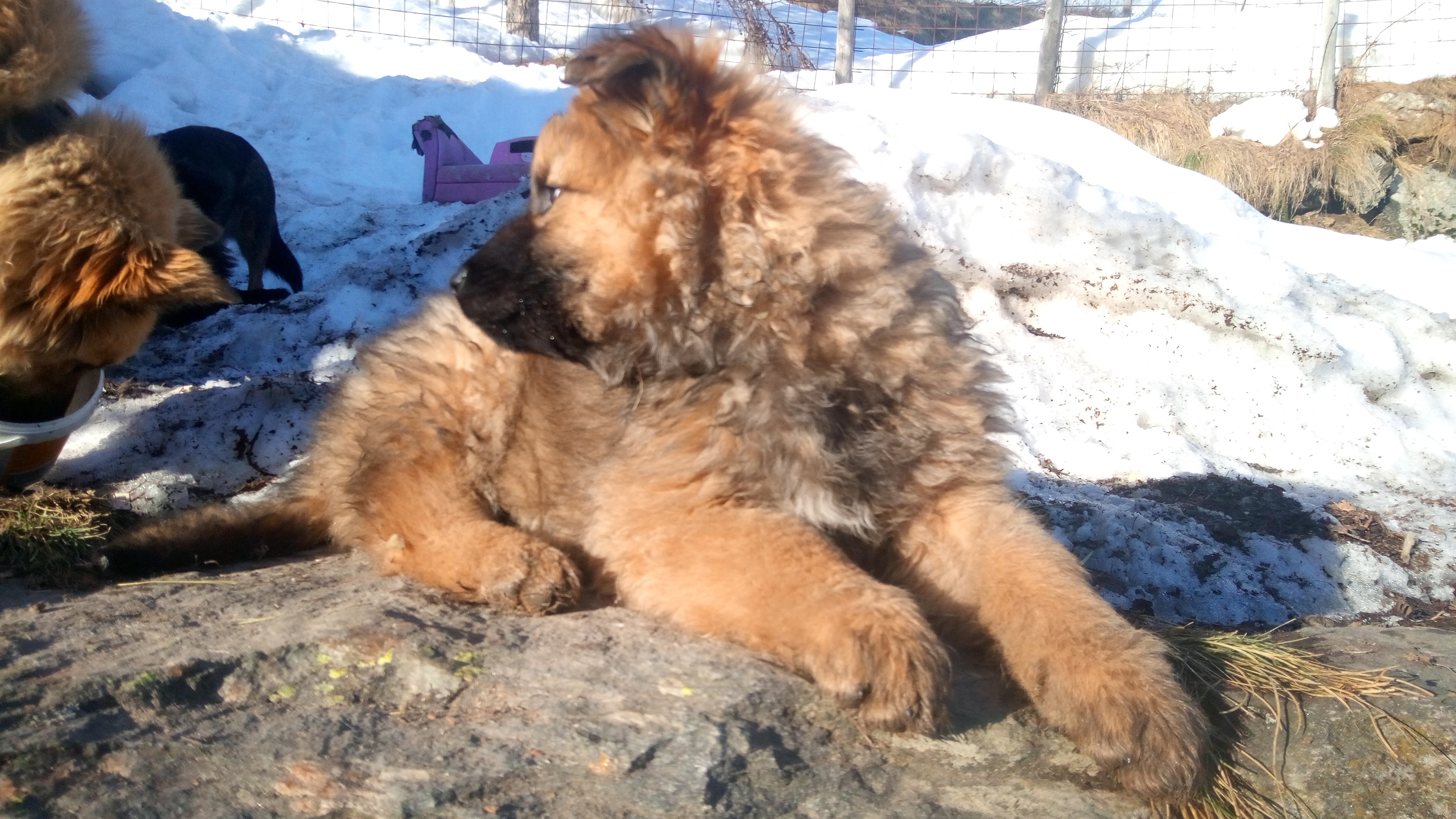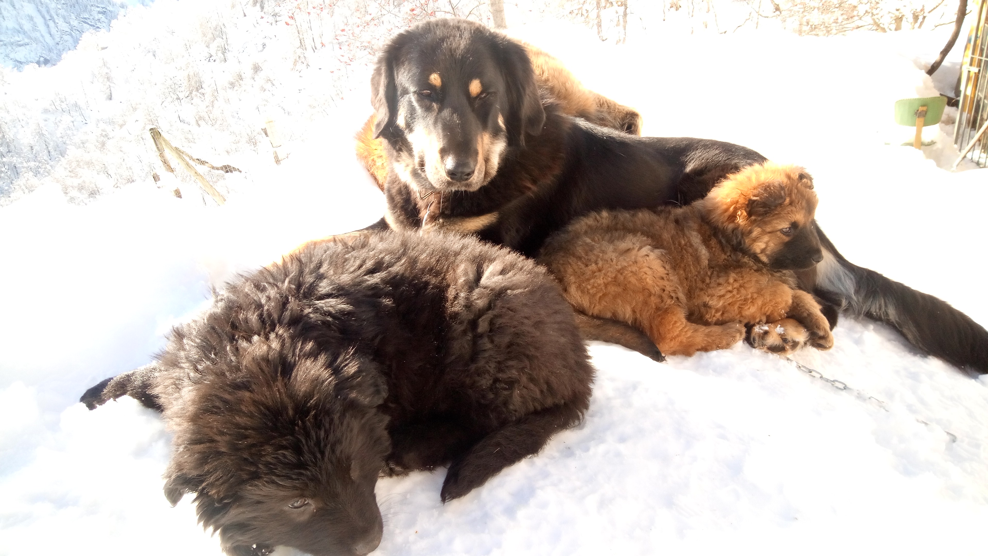 Welpen wachsen in harmonischem Rudel auf .