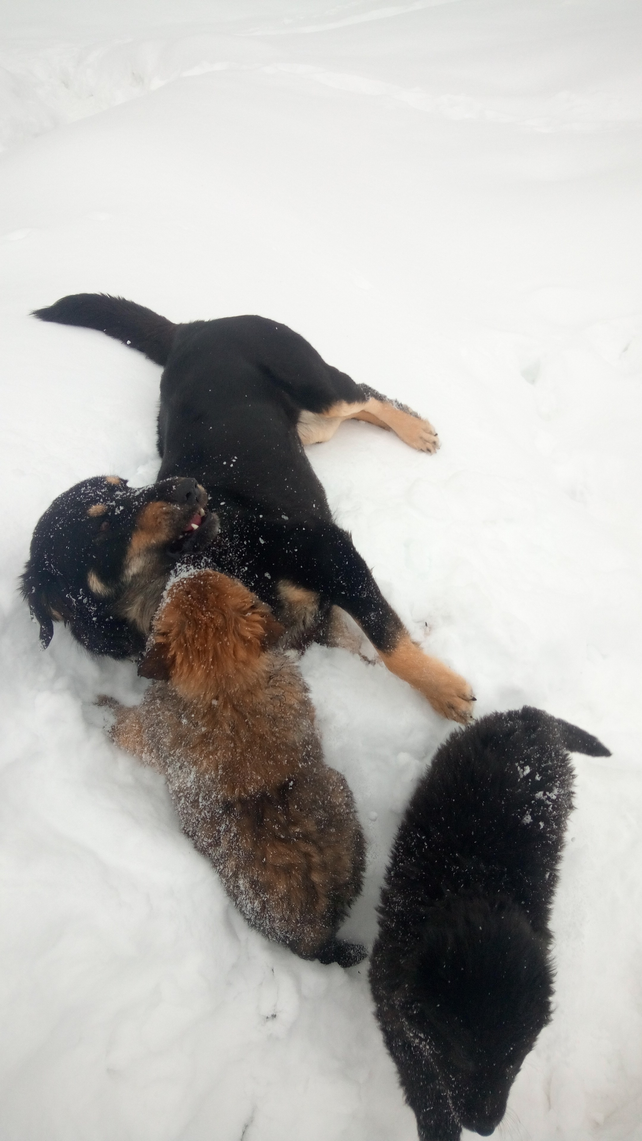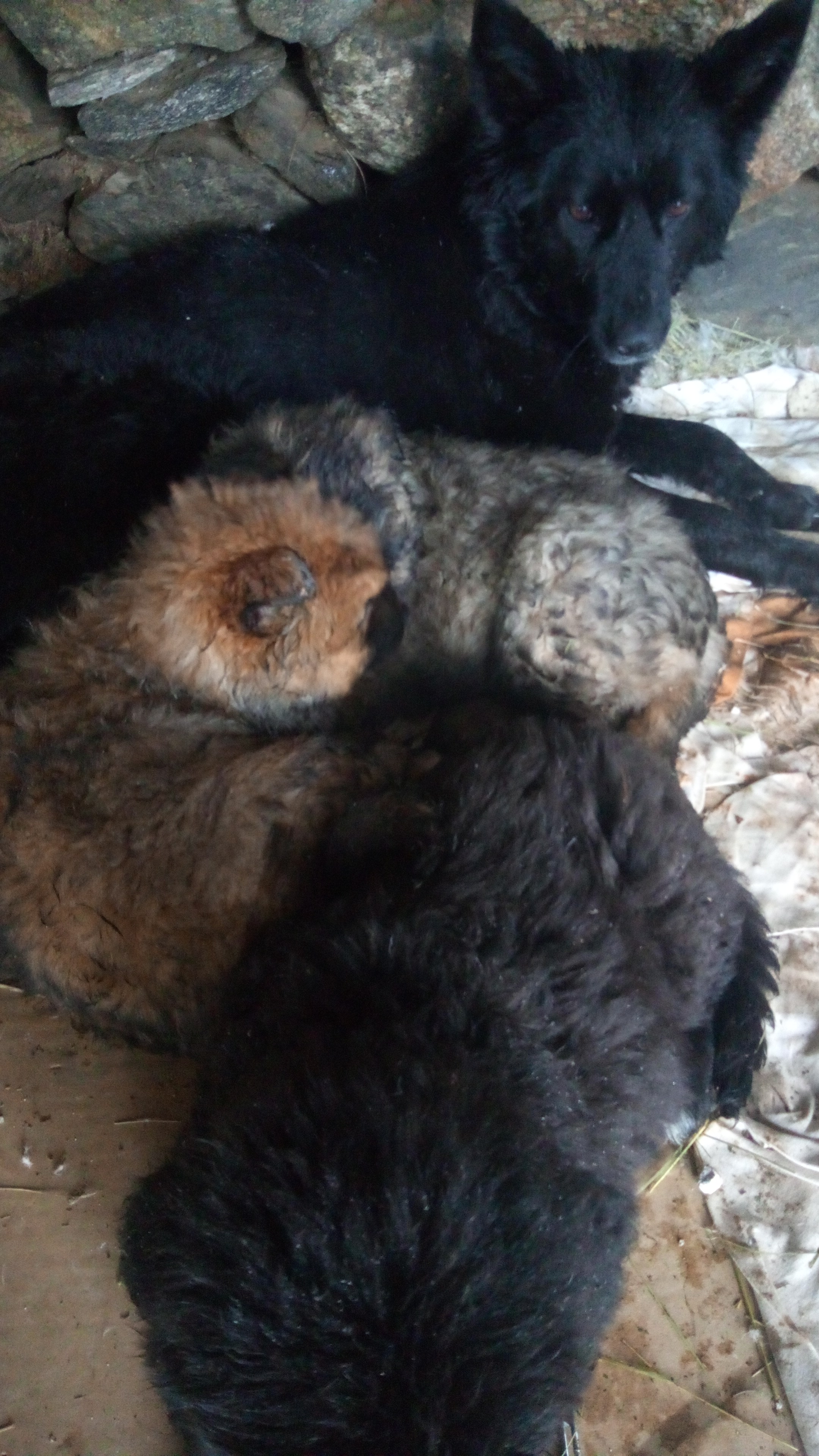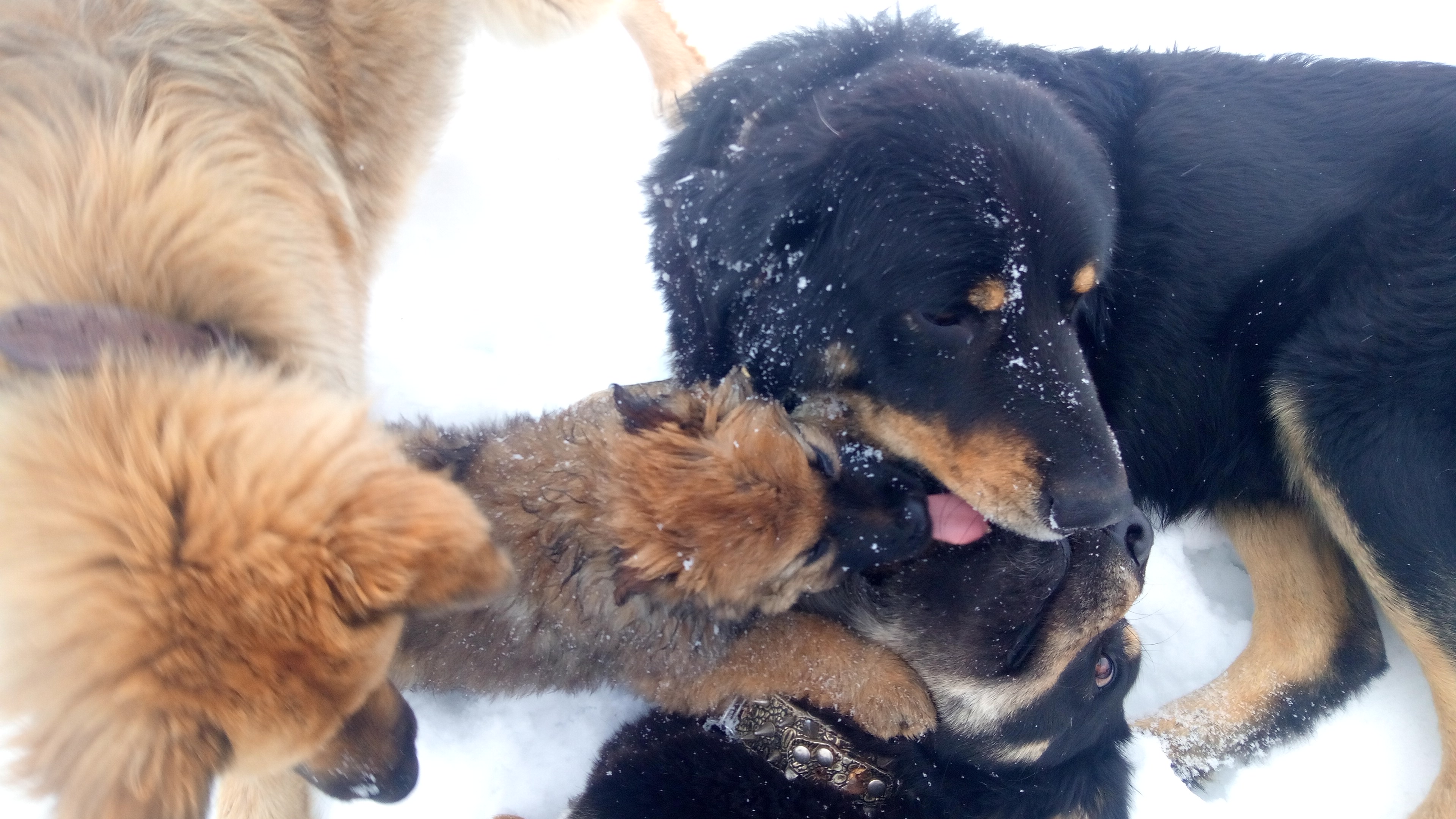 Welpen wachsen in harmonischem Rudel auf .