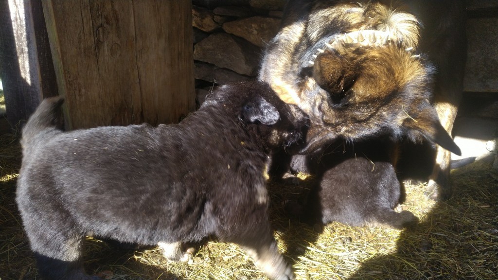 Die Welpen wachsen im Rudel lange sehr tierbezogen auf und gewinnen zuerst vorallem ueber die Fuetterung einen Bezug zum Menschen. Eine regelmaessige Fuetterung erlaubt es die Welpen zu konditionieren. Sobald die Mutter nicht mehr Milch gibt und ihre Welpen flieht beginnt die Abhaengigkeit vom Menschen.